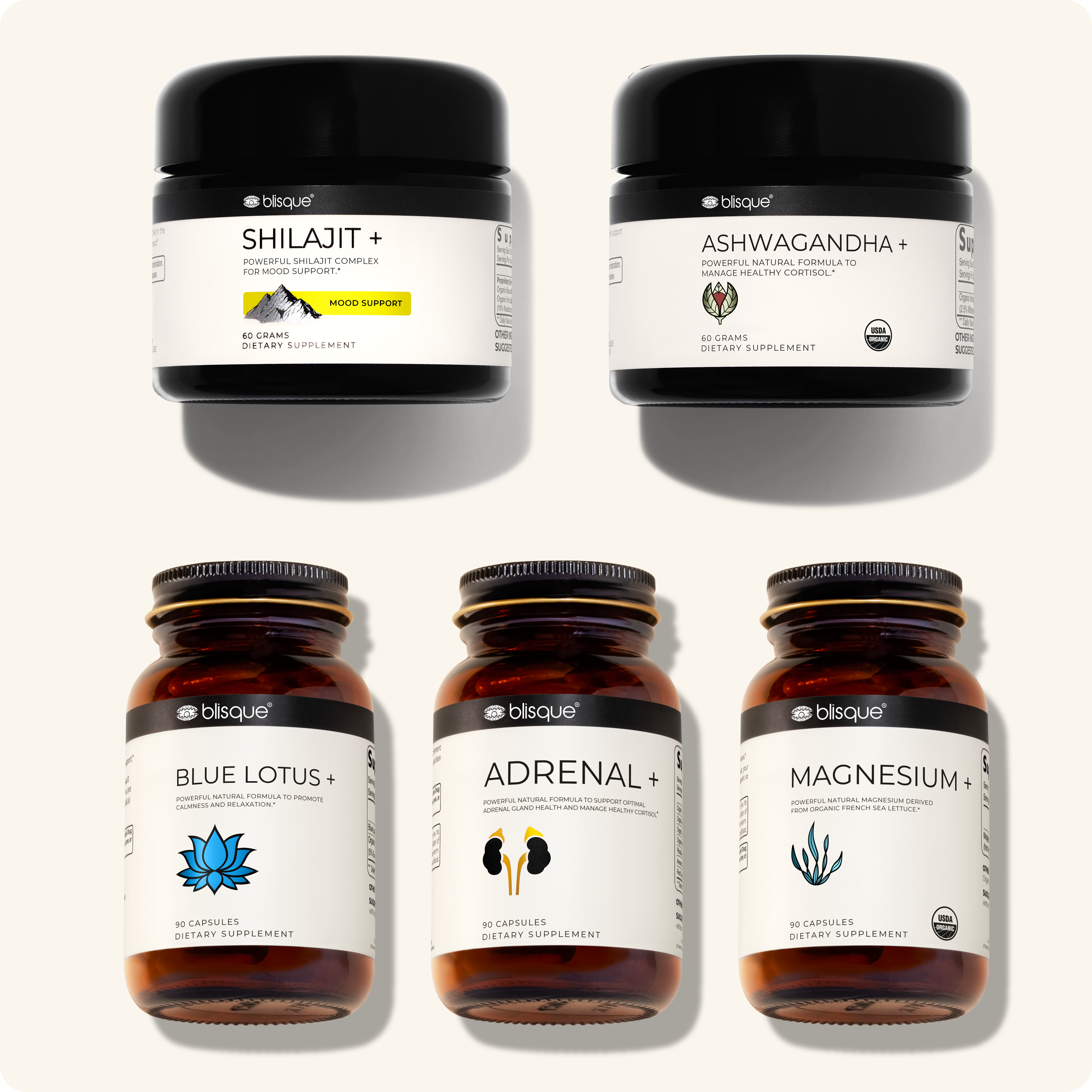 SHILAJIT + MOOD SUPPORT BLUE LOTUS + MAGNESIUM + ADRENAL SUPPORT + ASHWAGANDHA +