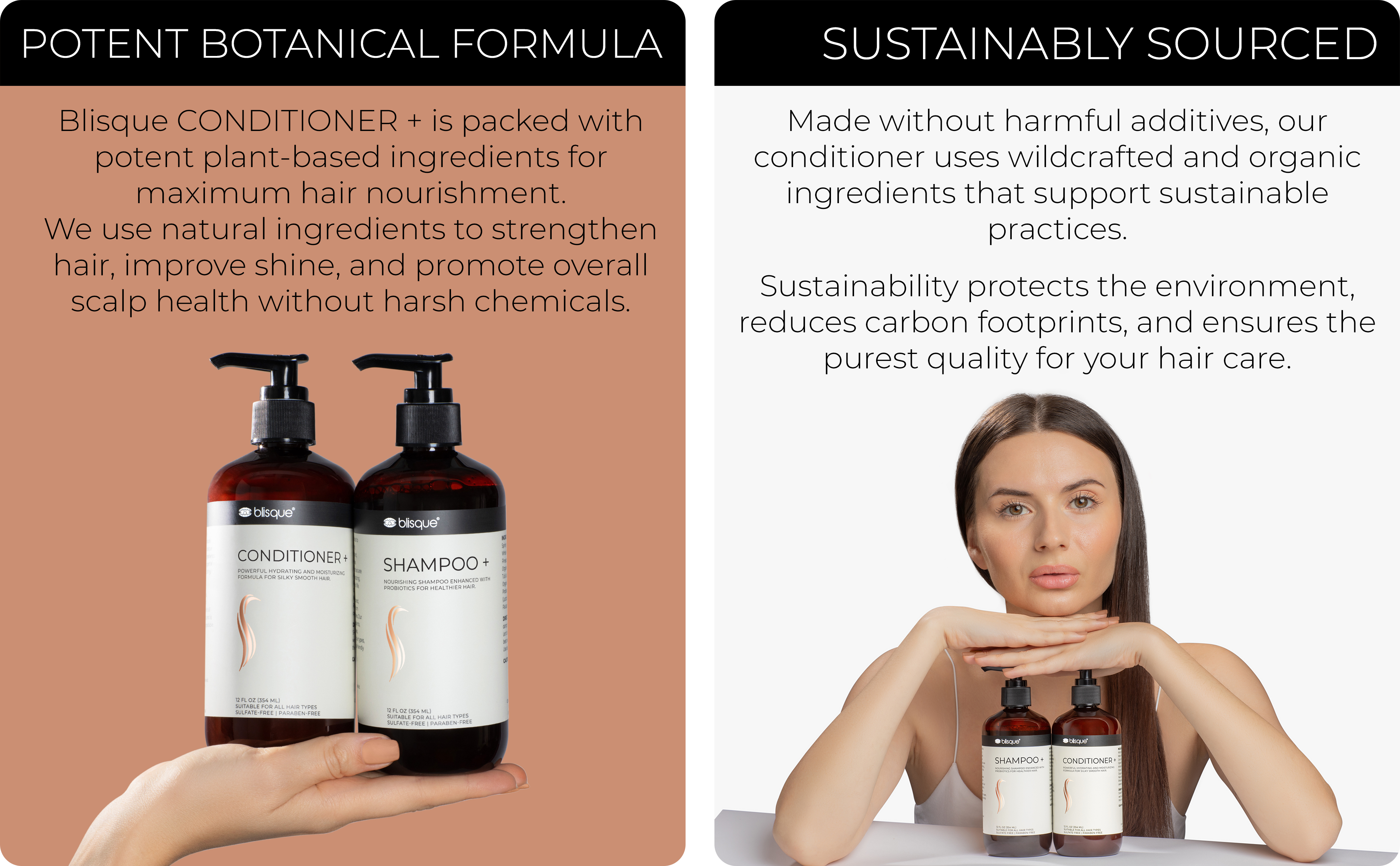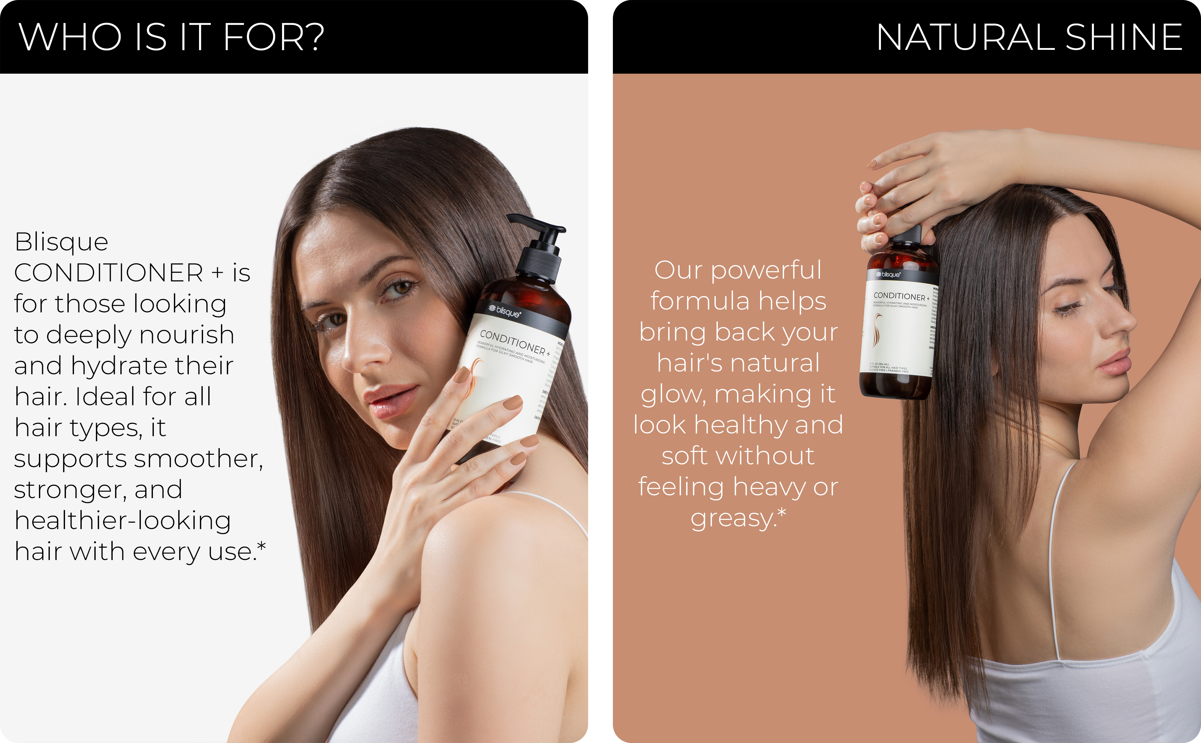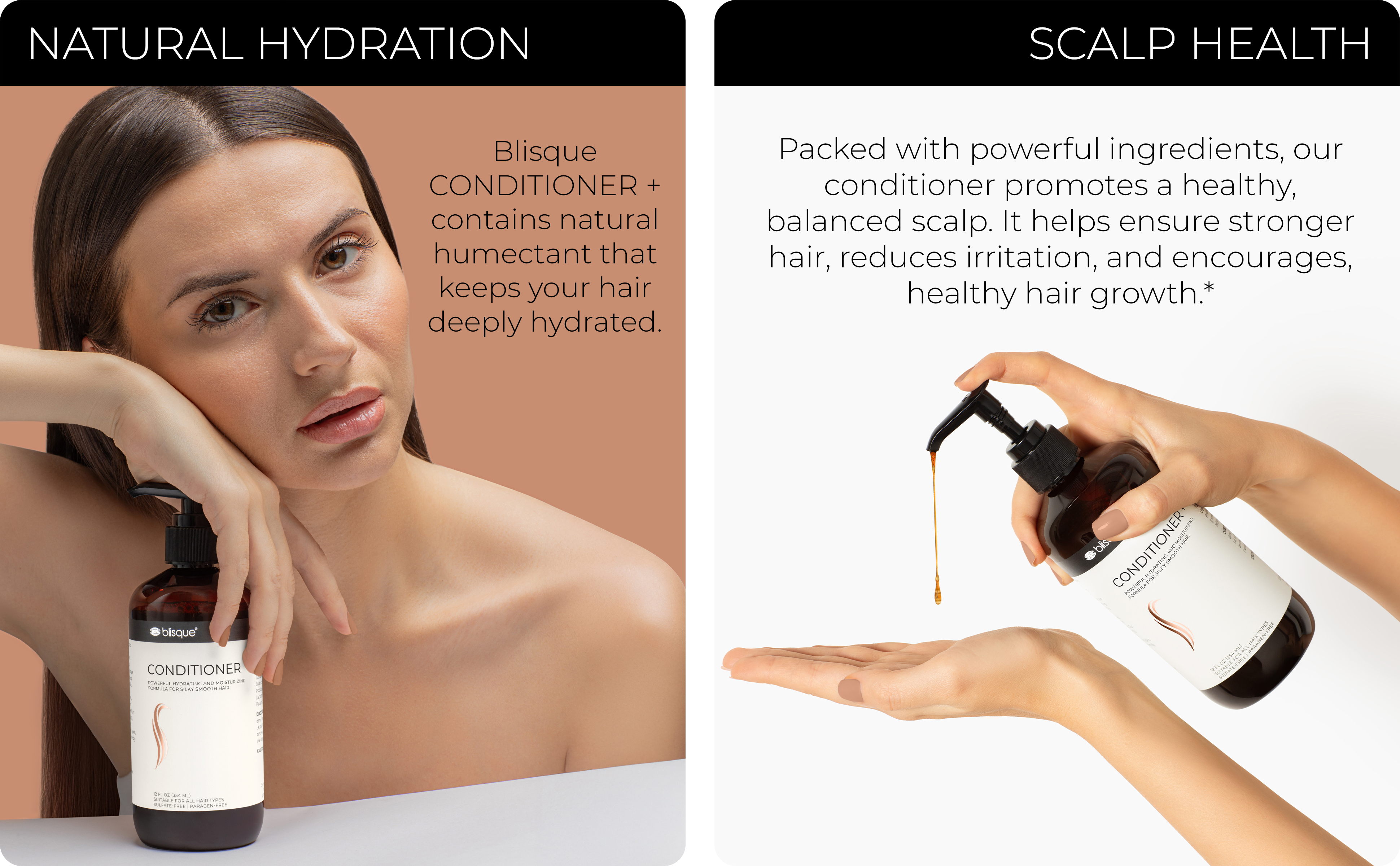 SUPPORTS HAIR HEALTH: Blisque CONDITIONER + provides a complete solution by combining scalp care, hair strengthening, and deep conditioning. It works holistically to improve your hair's overall health, reducing damage, promoting growth, and keeping your hair vibrant and strong over time.*
