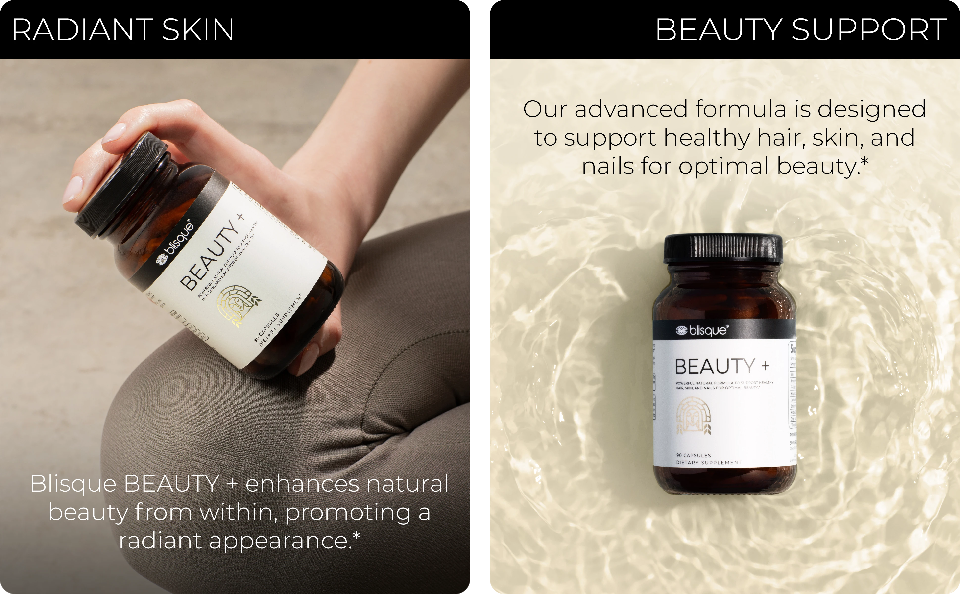 SKIN GLOW BOOST: Blisque BEAUTY + helps elevate skin care, helping you achieve a more youthful appearance and a luminous glow.*