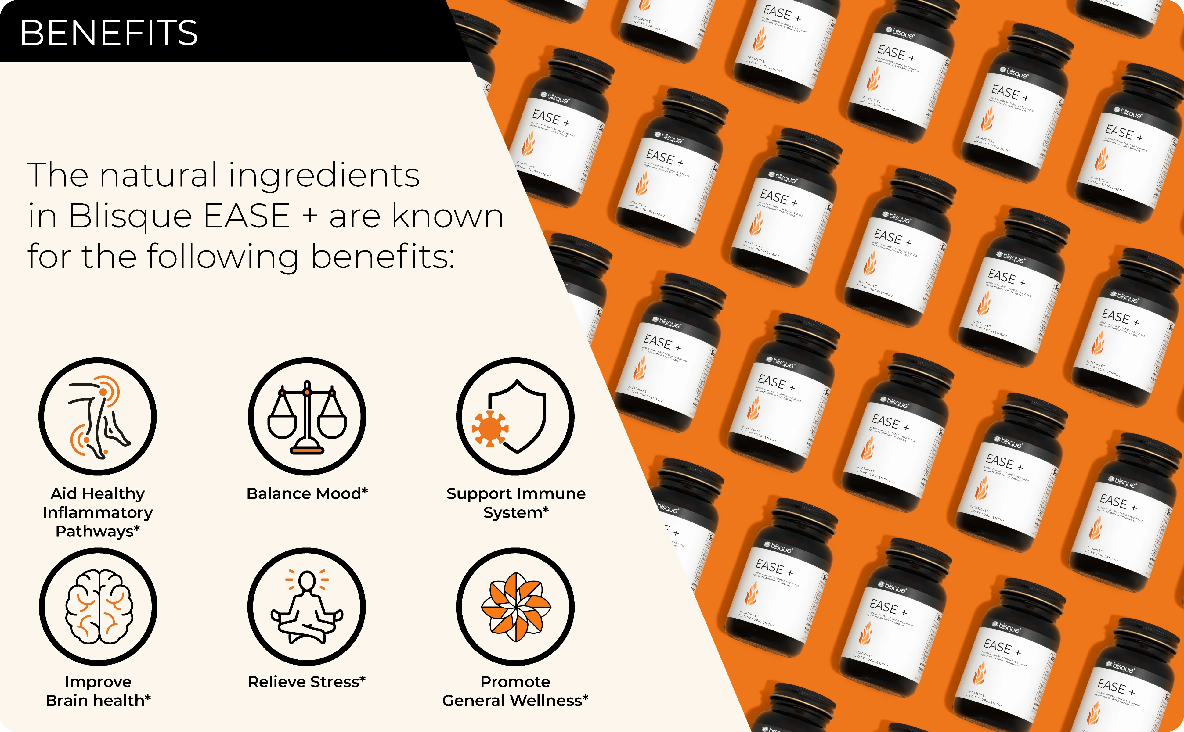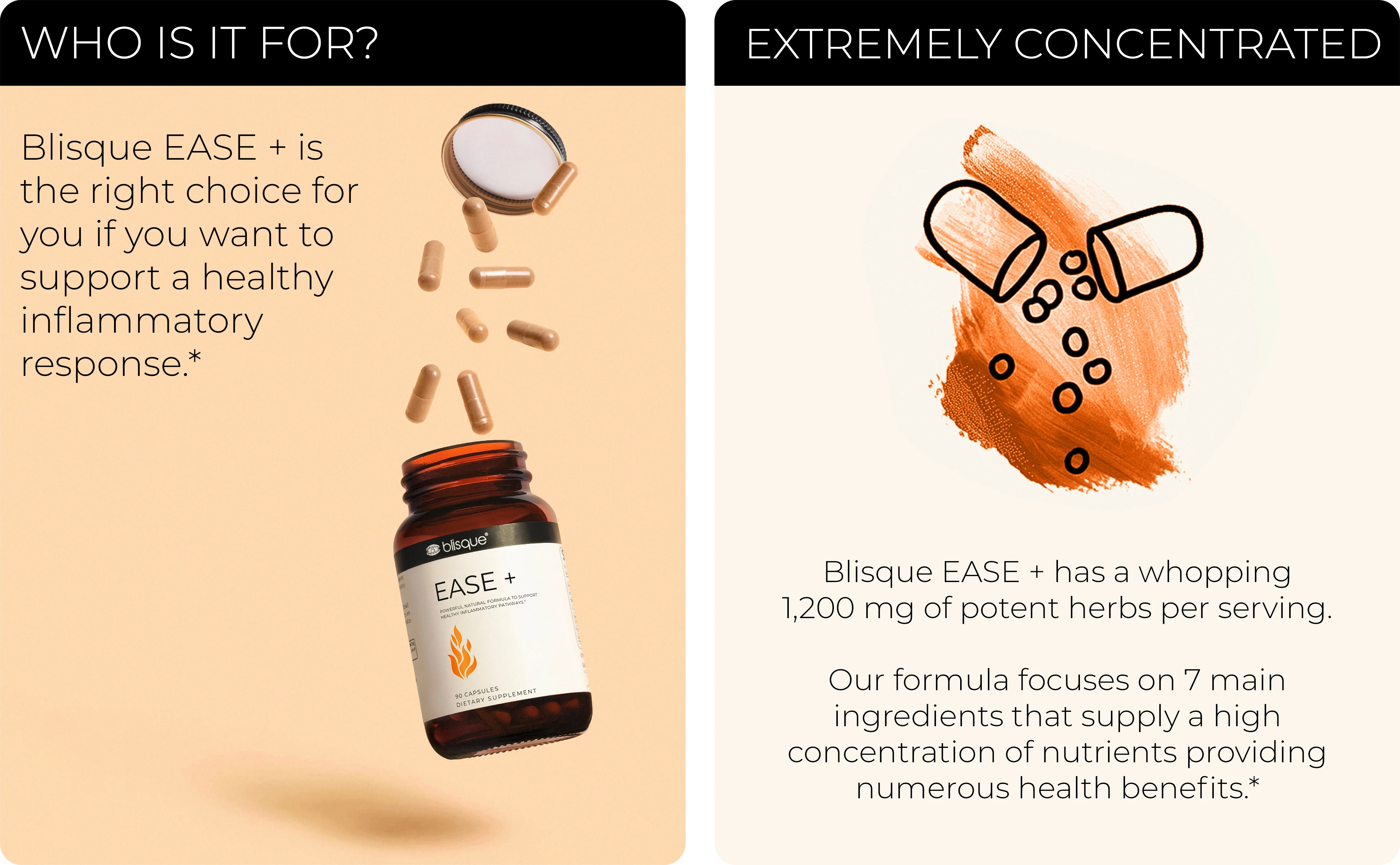SUPPORTS HEALTHY INFLAMMATORY RESPONSE: Blisque EASE + helps support a healthy inflammatory response and aids healthy inflammatory pathways.*