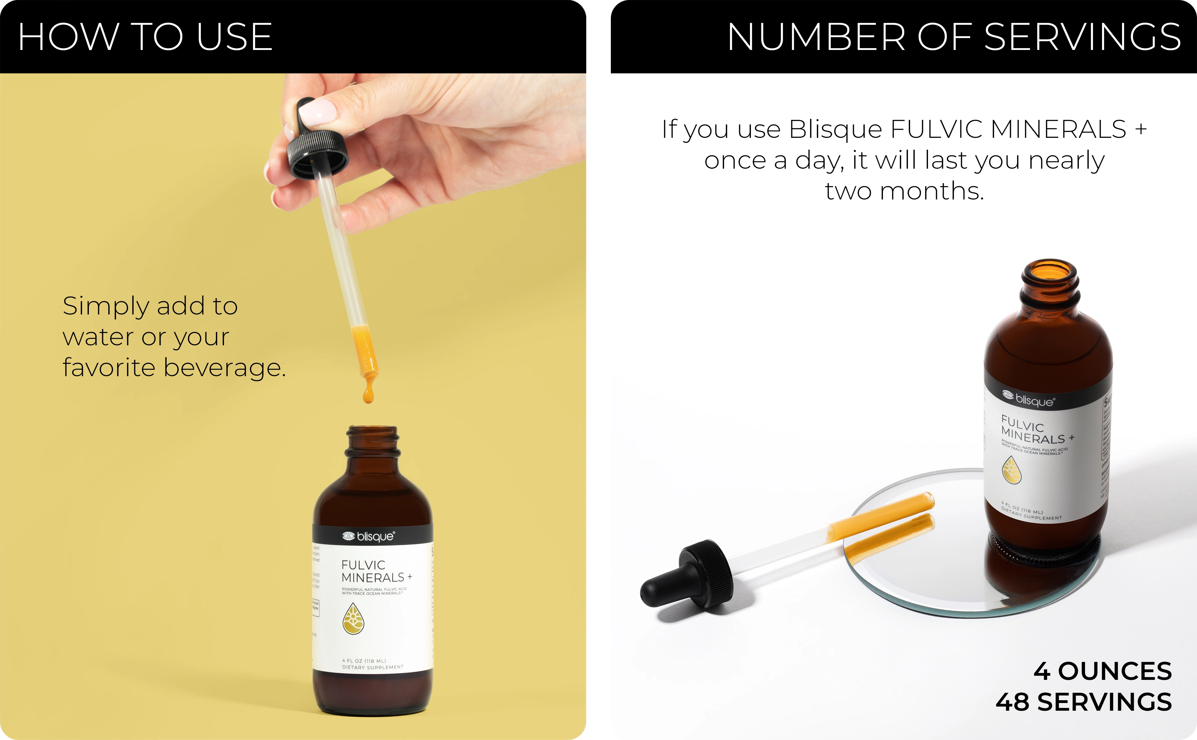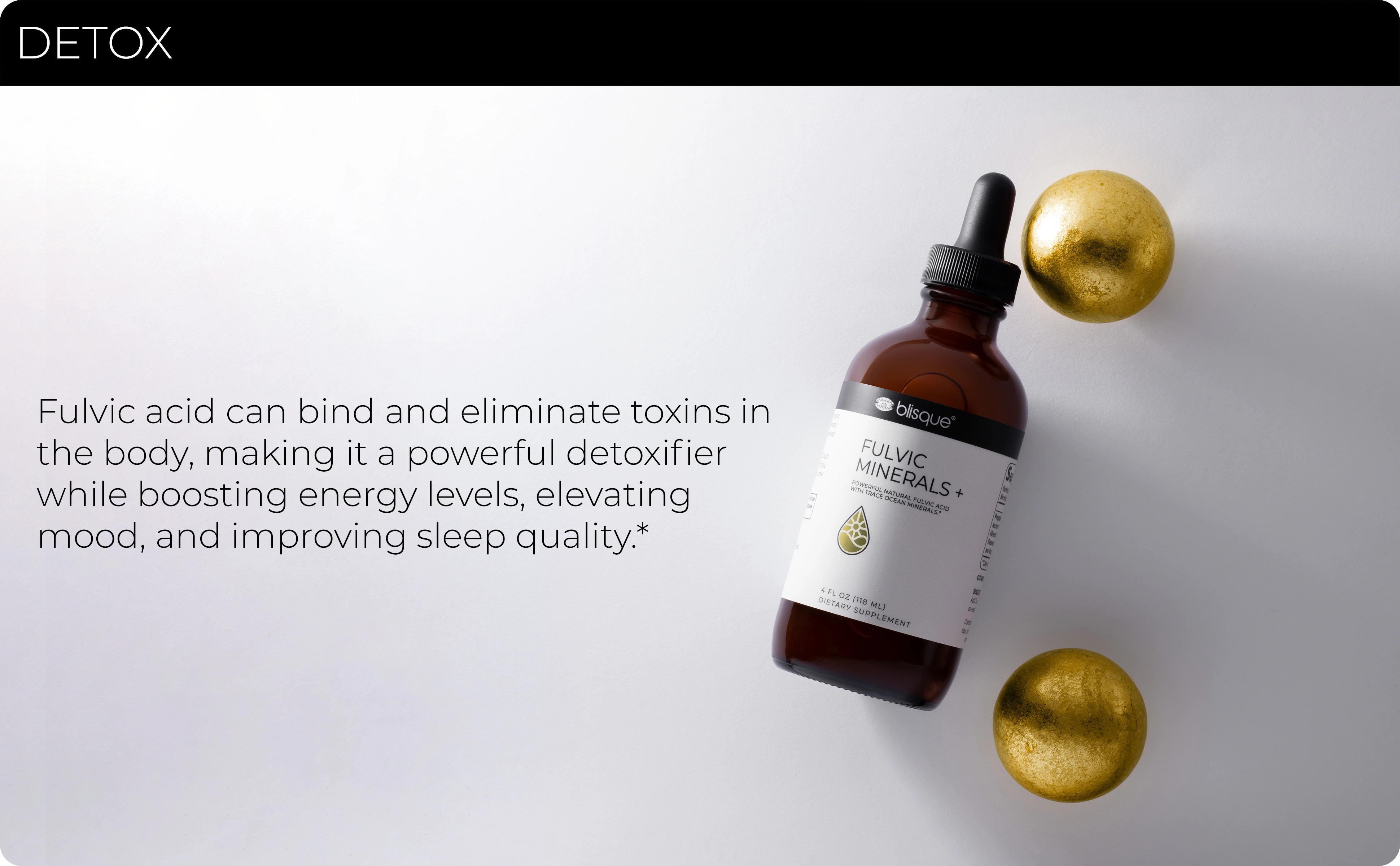 FULVIC ACID COMPLEX: Blisque FULVIC MINERALS + provides fulvic acid, humic acid, seaweed-derived calcium, and magnesium, and at least 70 trace minerals ensuring your body is operating at optimum levels, leaving you refreshed and energized!*