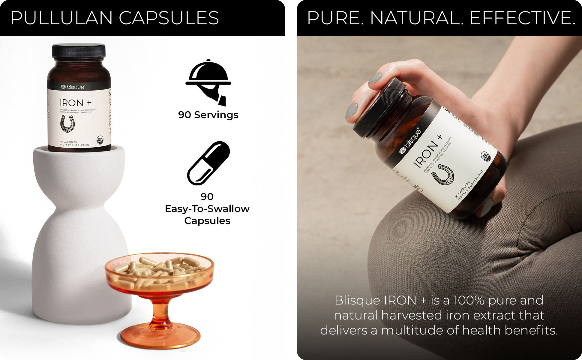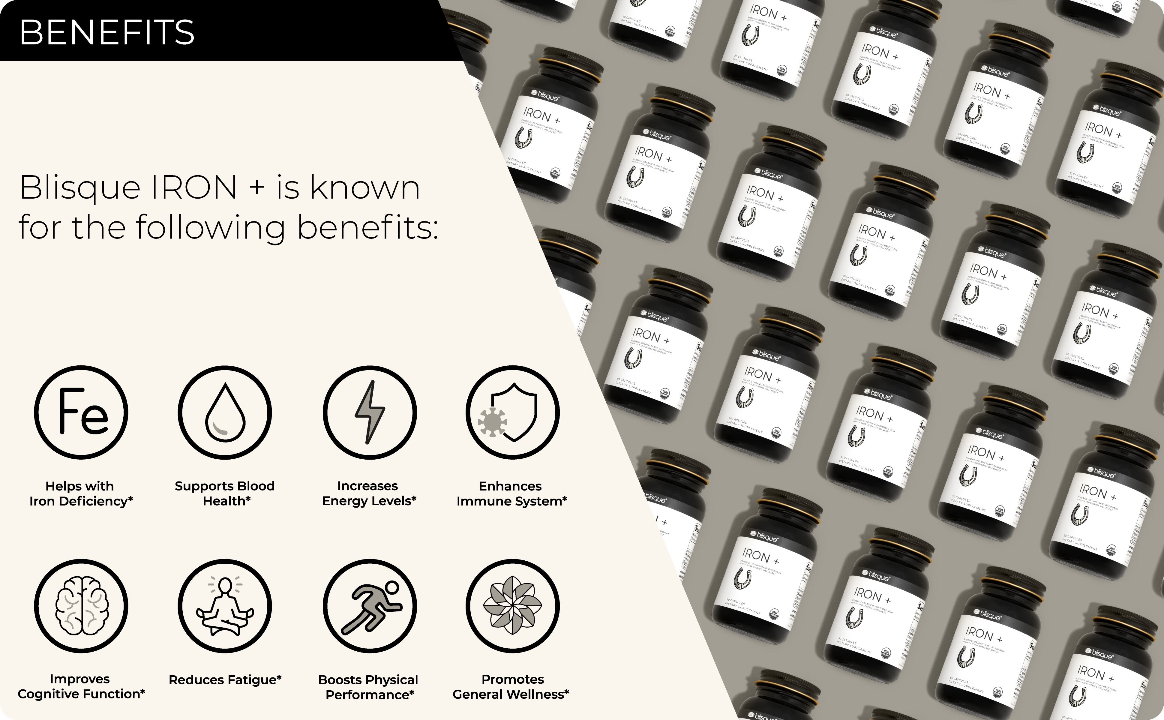 COMBATS IRON DEFICIENCY: Blisque IRON + helps replenish low iron to prevent fatigue and improve energy level.*