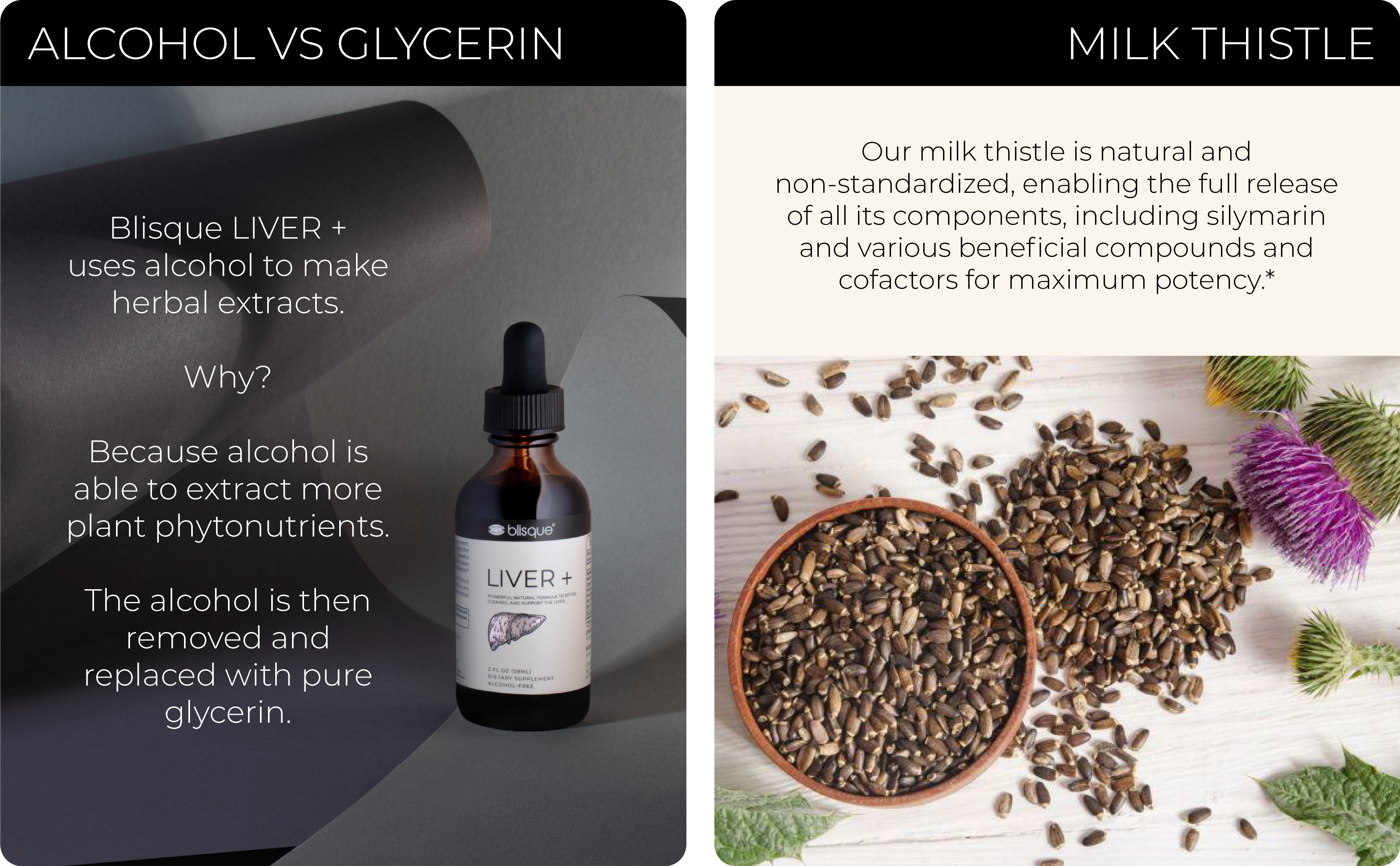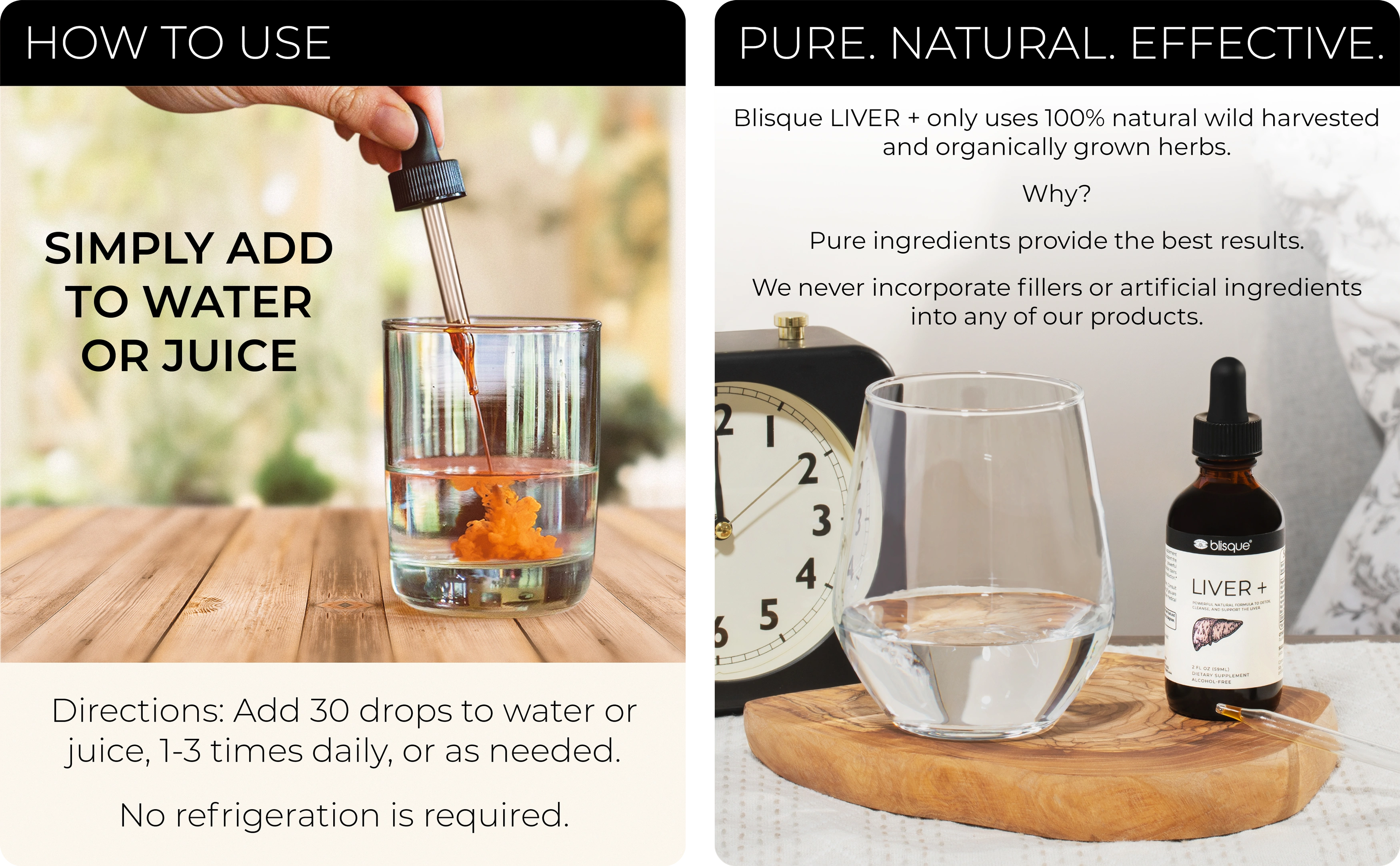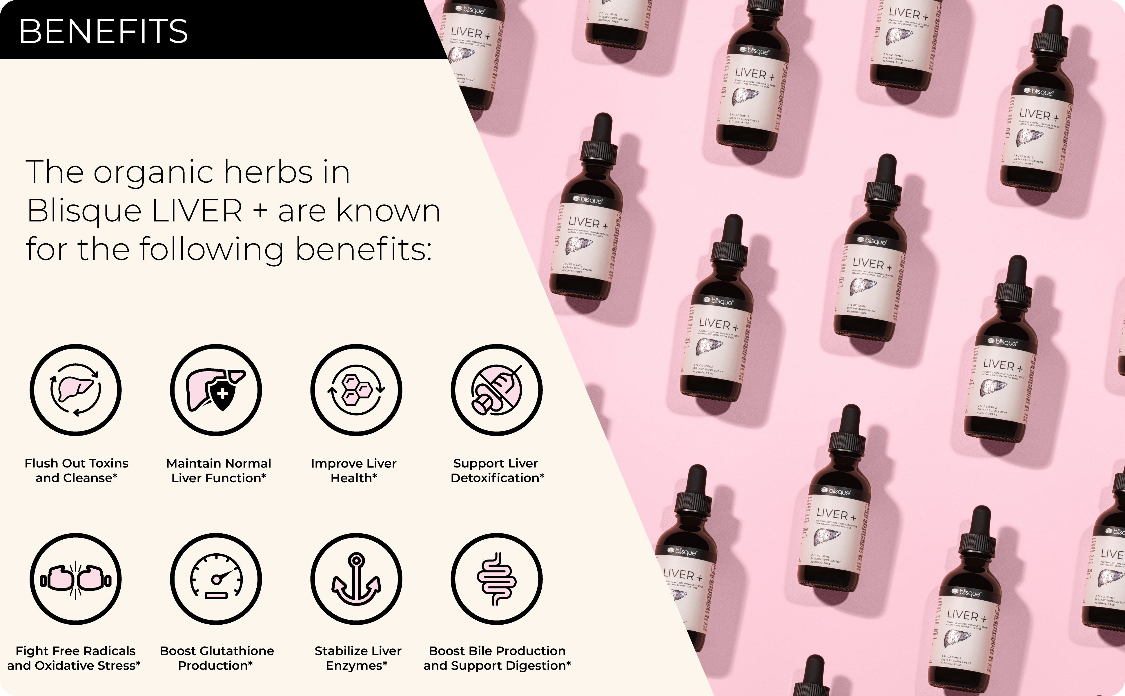 INGREDIENTS THAT PROVIDE CLINICAL LEVEL SUPPORT: Blisque LIVER + is expertly formulated with certified organic cleansing herbs, including milk thistle, oregon grape, burdock, dandelion, and yellow dock. This combination of science-backed ingredients creates a powerful synergy that provides the finest liver support you can get, just as Mother Nature intended.*