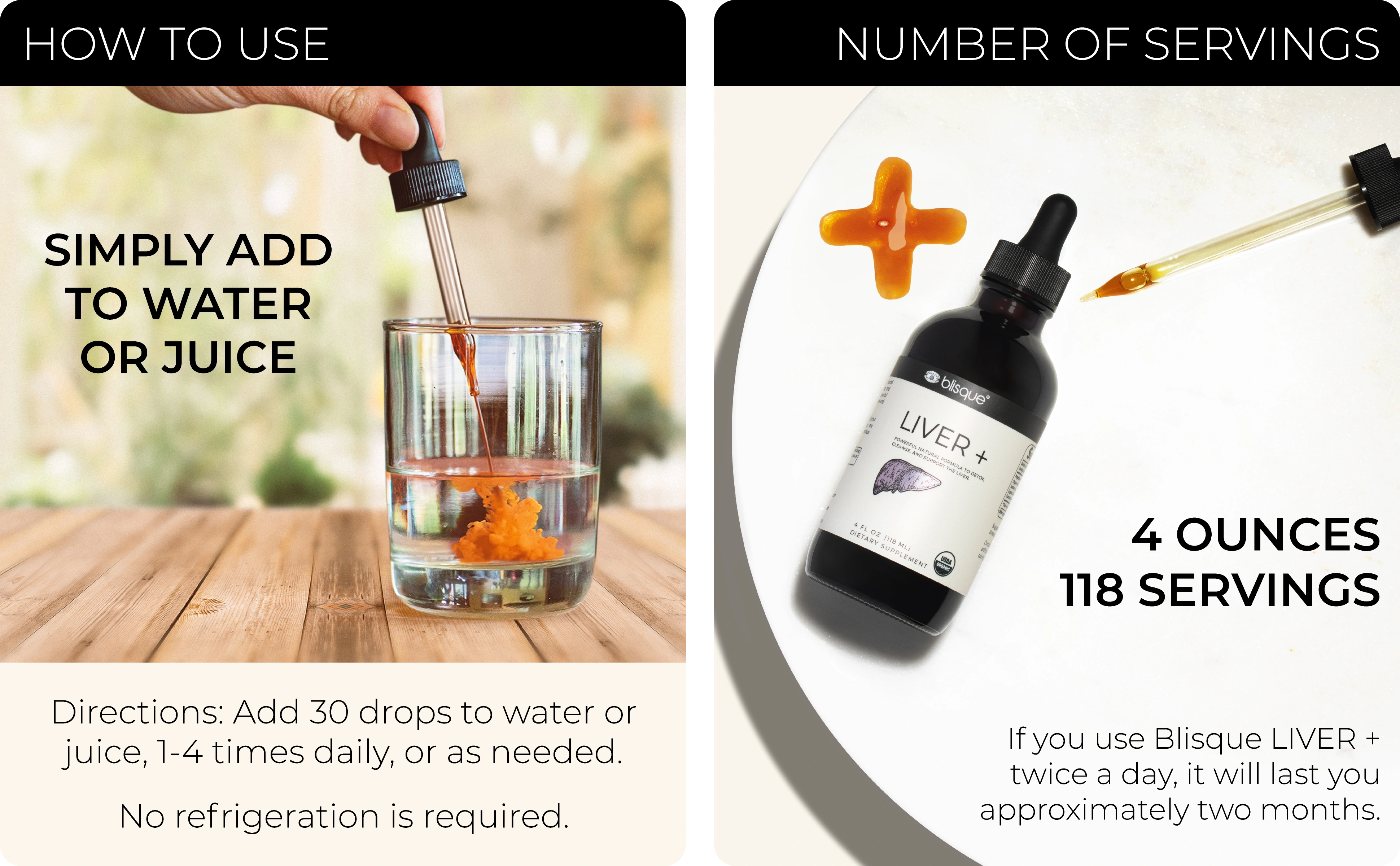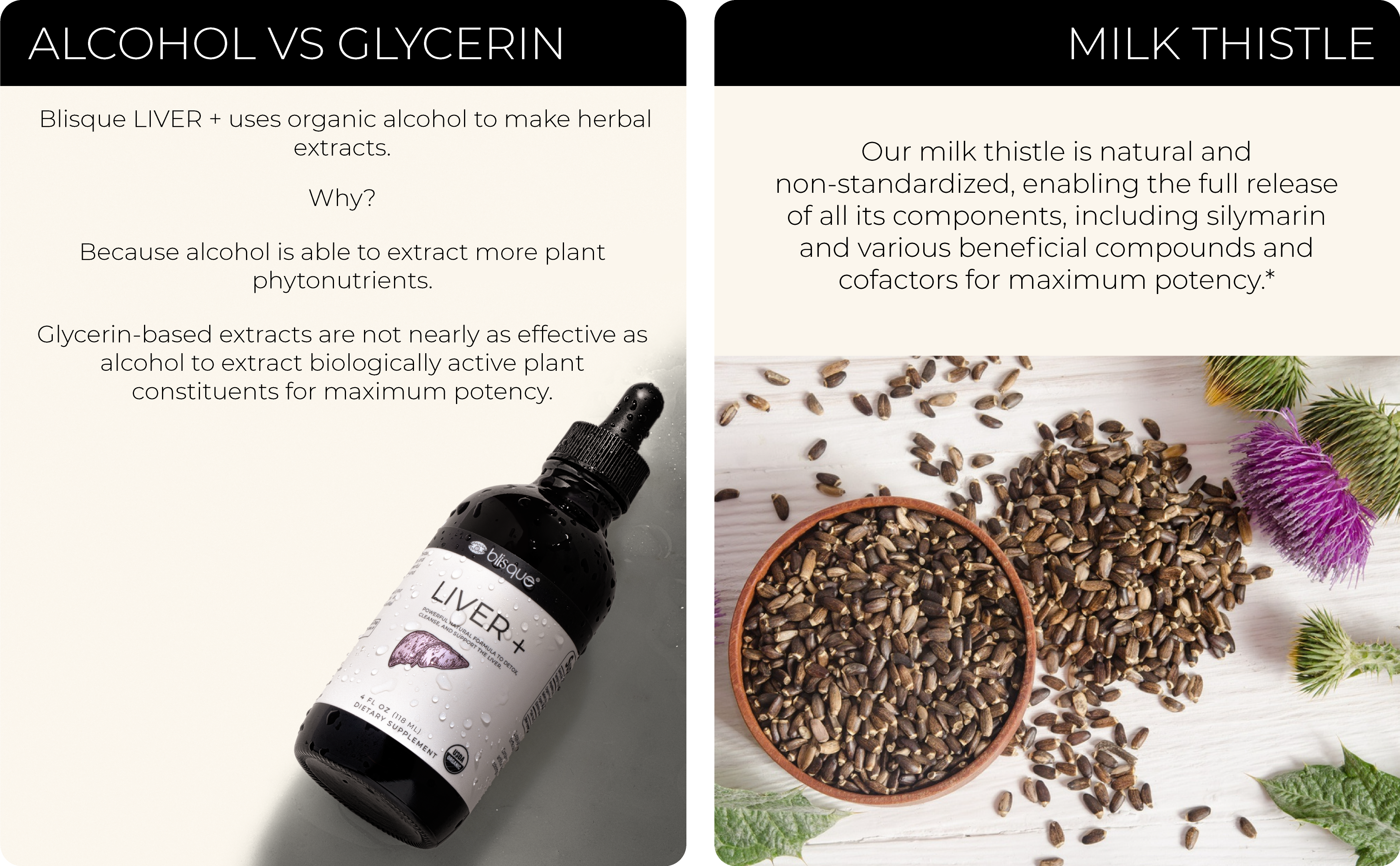 INGREDIENTS THAT PROVIDE CLINICAL LEVEL SUPPORT: Blisque LIVER + is expertly formulated with certified organic cleansing herbs, including milk thistle, oregon grape, burdock, dandelion, and yellow dock. This combination of science-backed ingredients creates a powerful synergy that provides the finest liver support you can get, just as Mother Nature intended.*