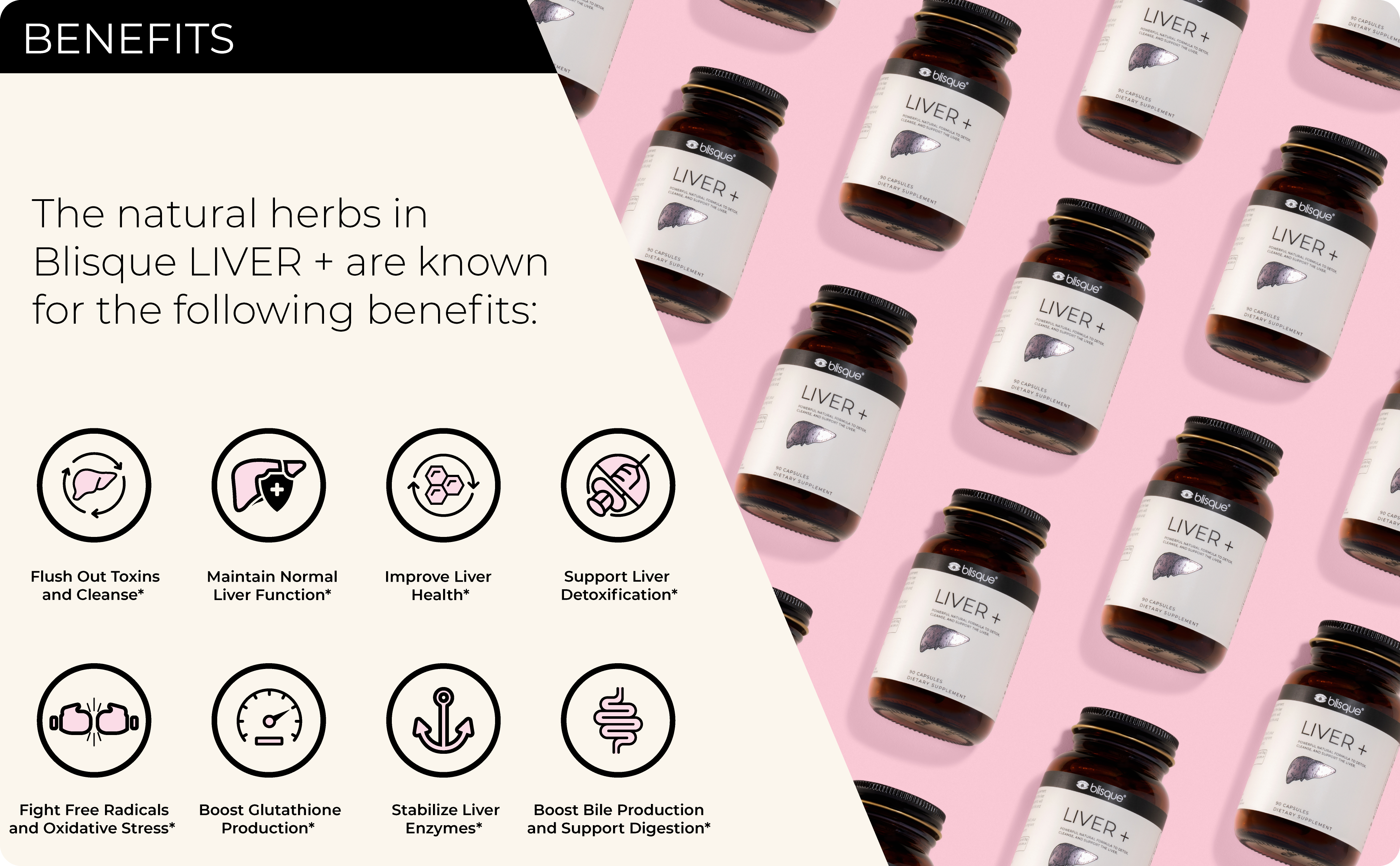 CLEANSE, DETOX & REPAIR YOUR LIVER: Blisque LIVER + is the ideal herbal supplement for a liver detox, cleanse and repair that will flush toxins out and help prevent them from re-entering, leaving you refreshed and energized!*