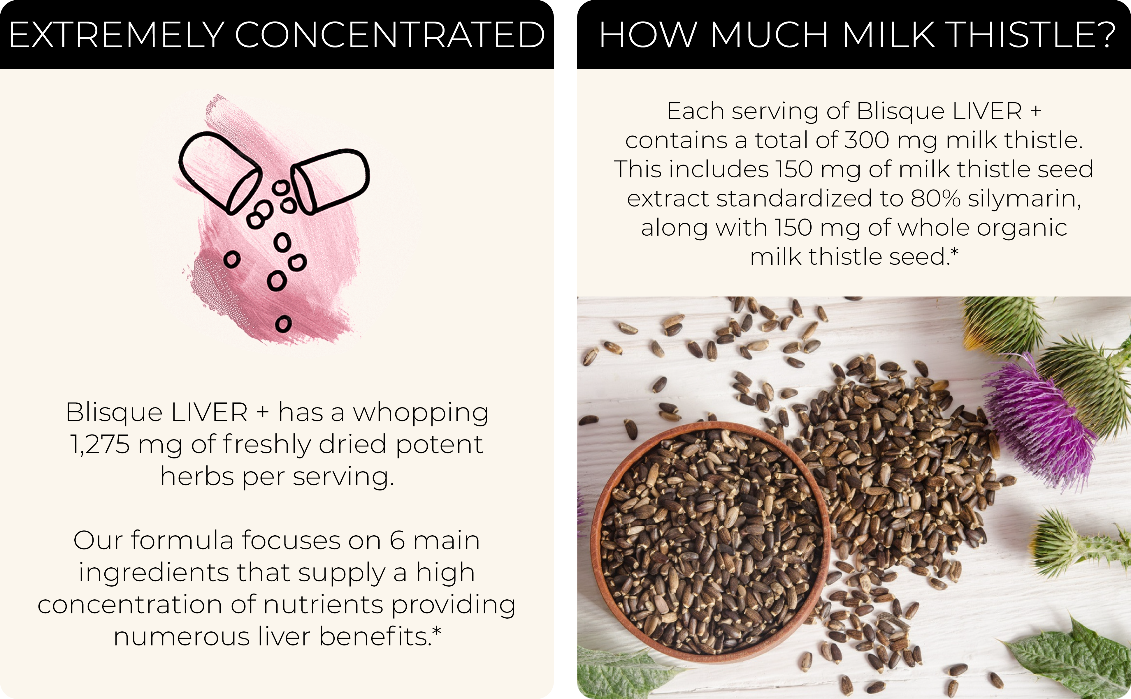 INGREDIENTS THAT PROVIDE CLINICAL LEVEL SUPPORT: Blisque LIVER + is expertly formulated with certified organic cleansing herbs, including milk thistle, oregon grape, burdock, dandelion, and yellow dock. This combination of science-backed ingredients creates a powerful synergy that provides the finest liver support you can get, just as Mother Nature intended.*