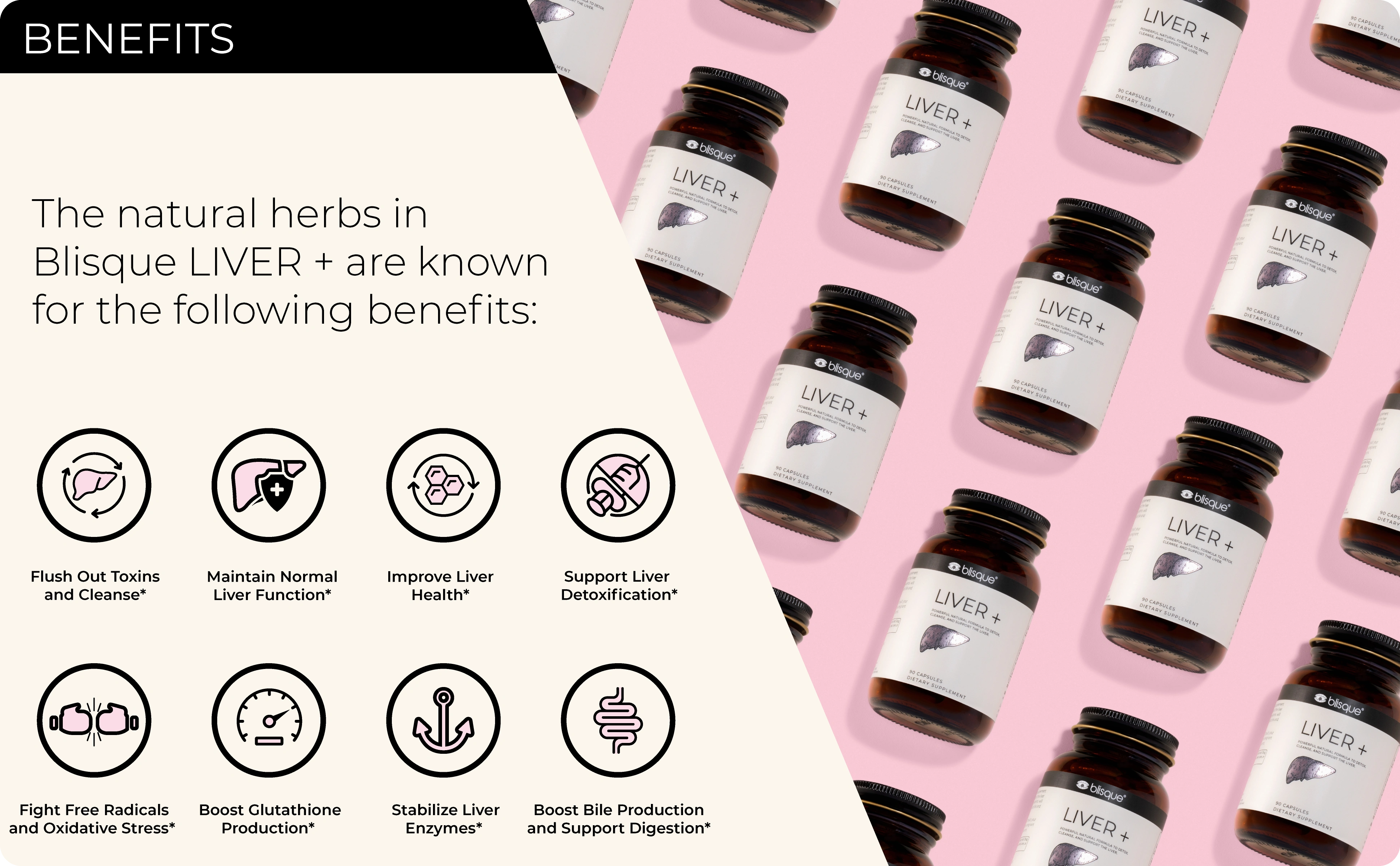 CLEANSE, DETOX & REPAIR YOUR LIVER: Blisque LIVER + is the ideal herbal supplement for a liver detox, cleanse and repair that will flush toxins out and help prevent them from re-entering, leaving you refreshed and energized!*