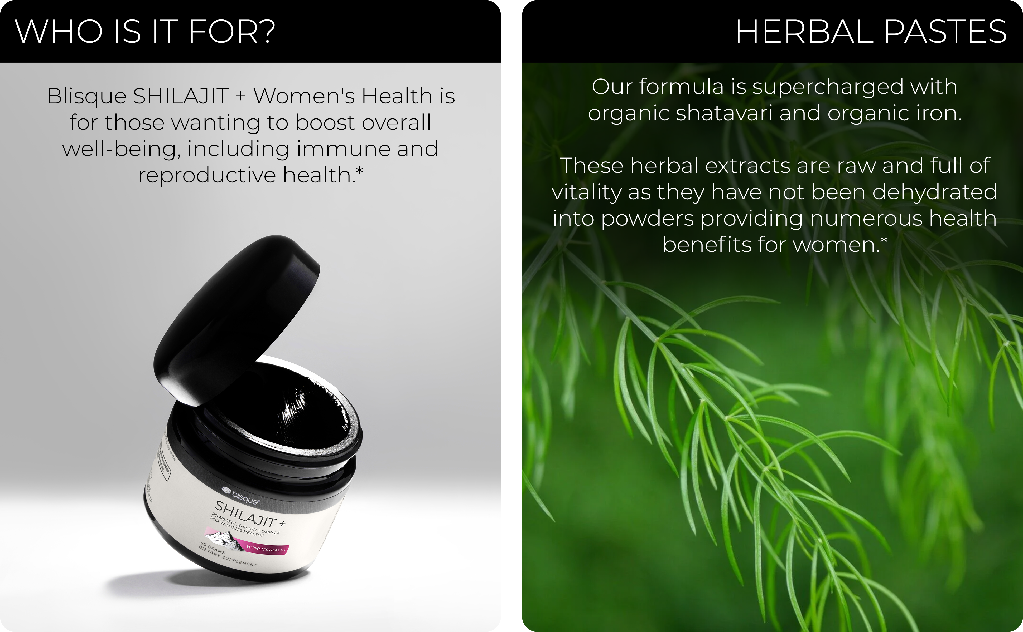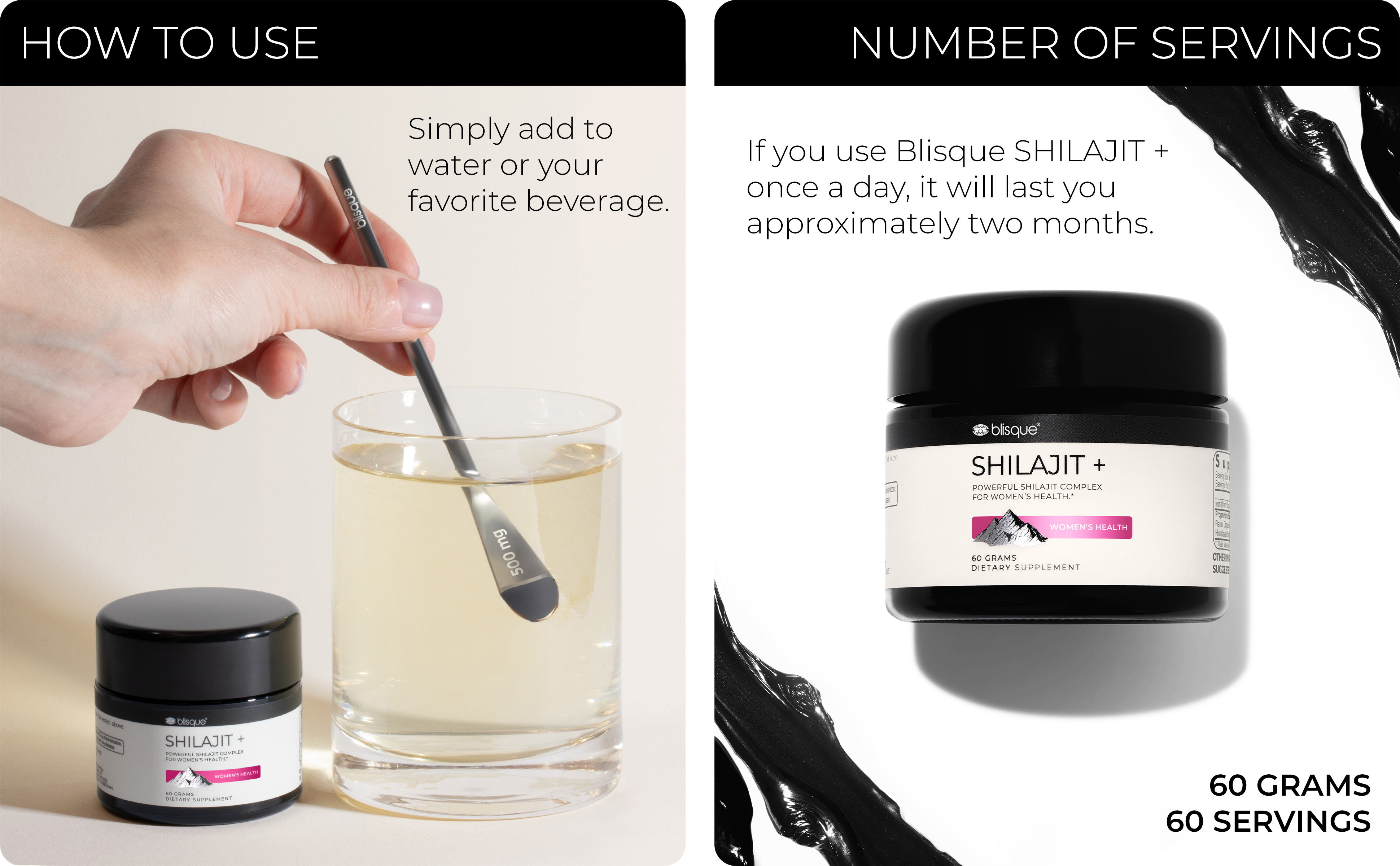 PURE HIMALAYAN SHILAJIT RESIN COMPLEX: Blisque SHILAJIT + is enhanced with organic shatavari, iron, and ginger extract for optimal wellness benefits and improved absorption. Our shilajit resin provides at least 85 trace minerals, fulvic acid, humic acid, antioxidants, amino acids, and bio-active elements, ensuring your body is operating at peak performance!*