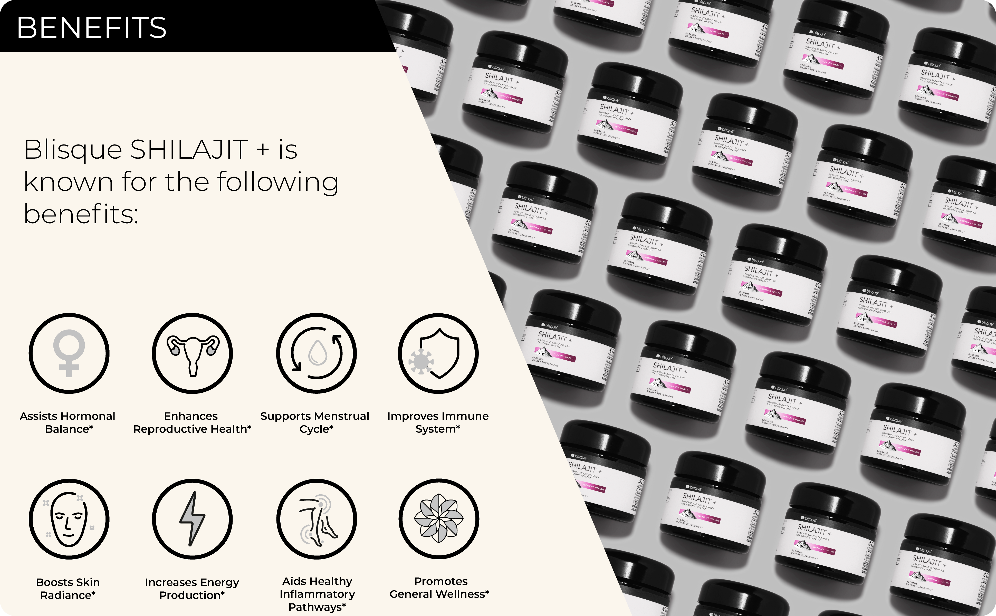 PROMOTE OVERALL WELL-BEING: Blisque SHILAJIT + is a comprehensive supplement that enhances your well-being. It will support your immune system, improve heart health, act as a brain booster, supercharge you with energy, stabilize your mood, and aid a healthy inflammatory response.*